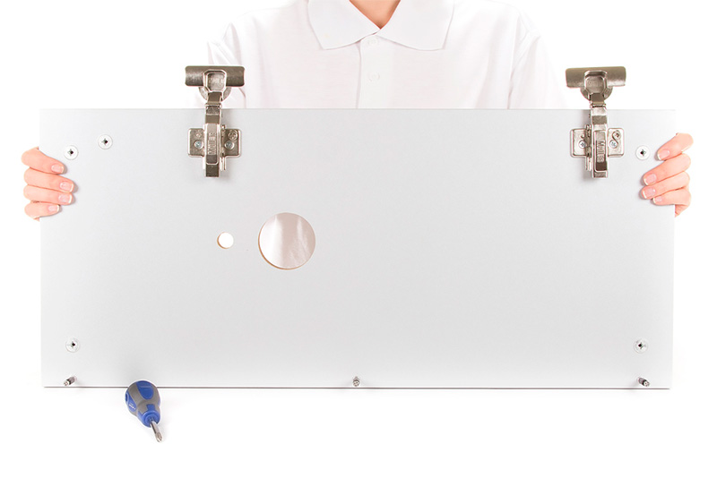 При помощи той же крестообразной отвертки вкручиваем дюбеля и устанавливаем эксцентриковые стяжки в отверстия под них.